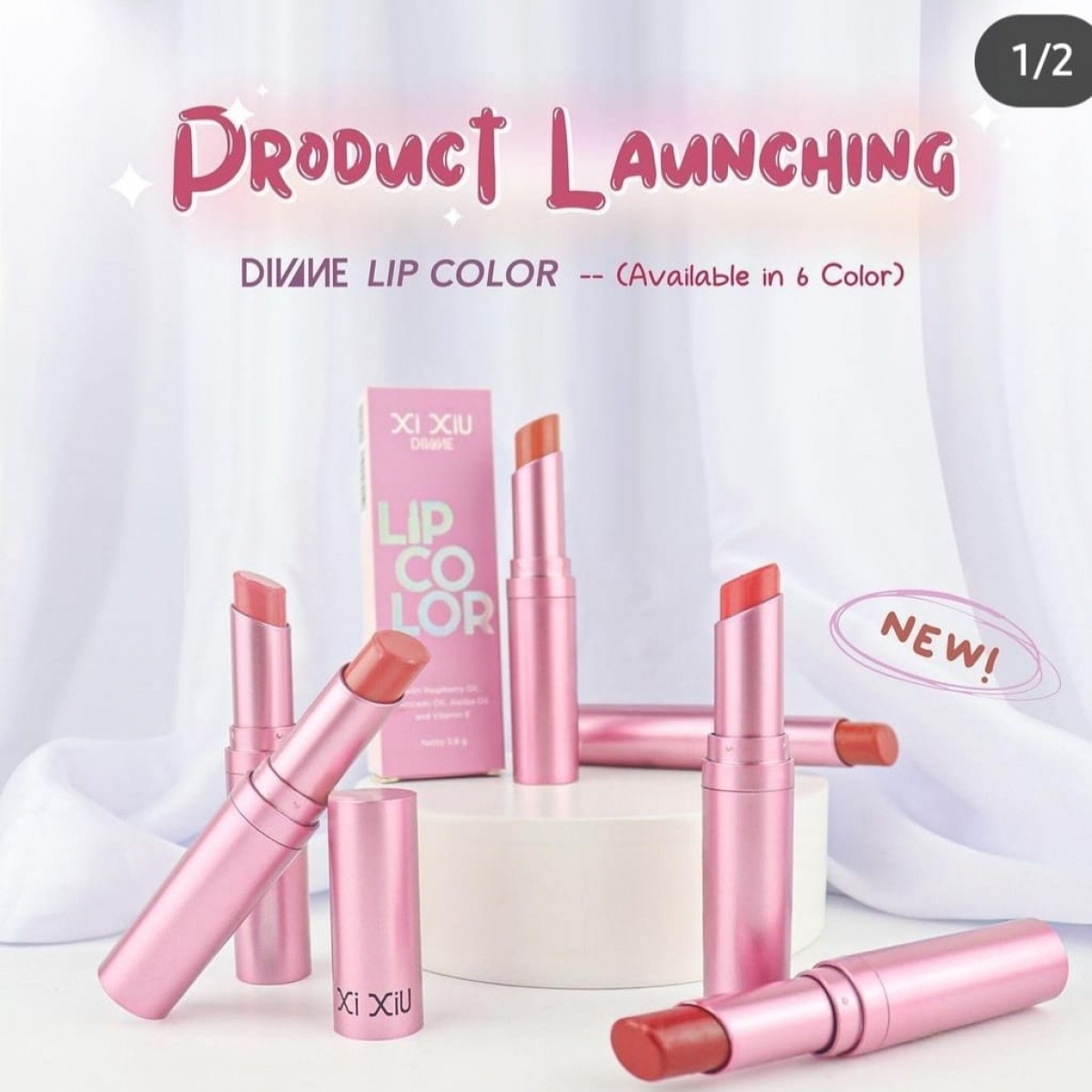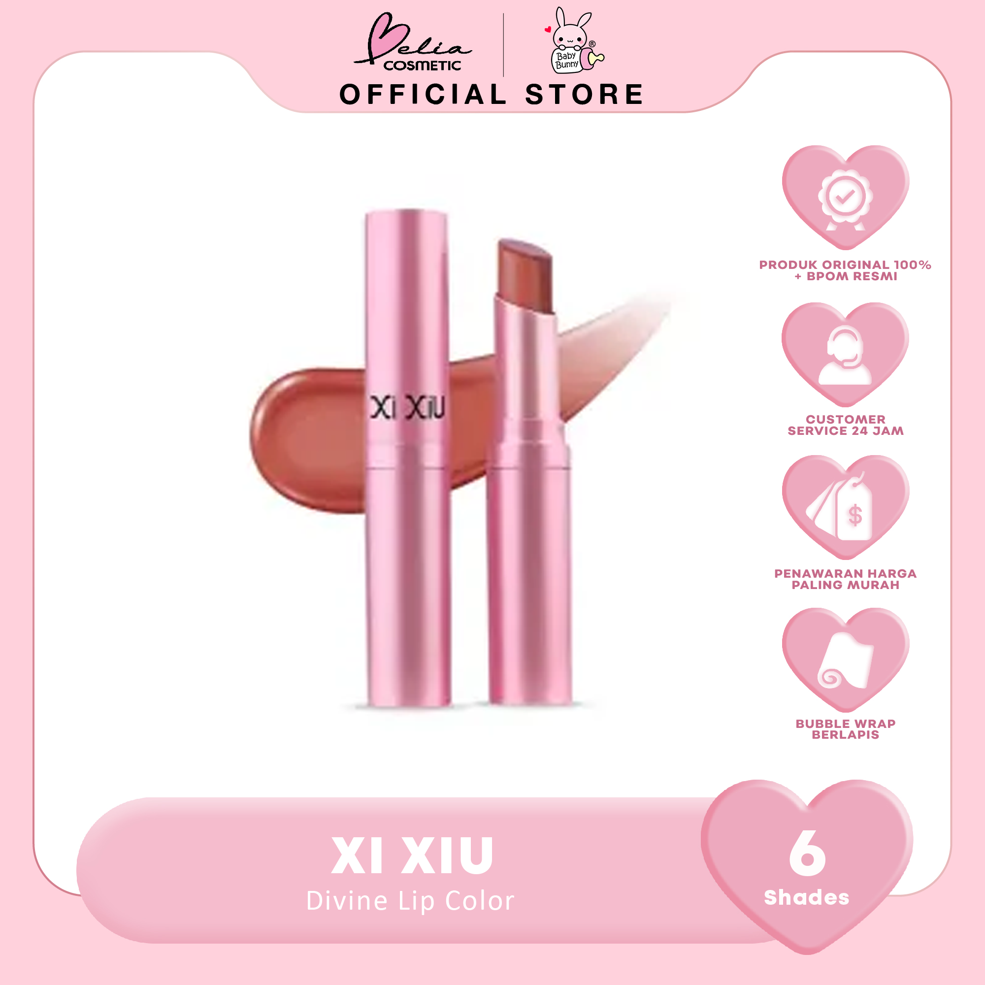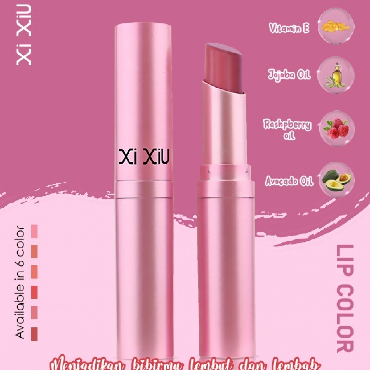 XI XIU DIVINE LIP COLOR hadir dengan 6 pilihan warna yang akan membuat bibir terlihat semakin mempesona , daya coverage tinggi dan tahan lama. Diperkaya dengan Raspberry Oil, Avocado Oil, Jojoba Oil, dan Vitamin E untuk membantu bibir terasa lebih lembut,lembab, dan mempesona.