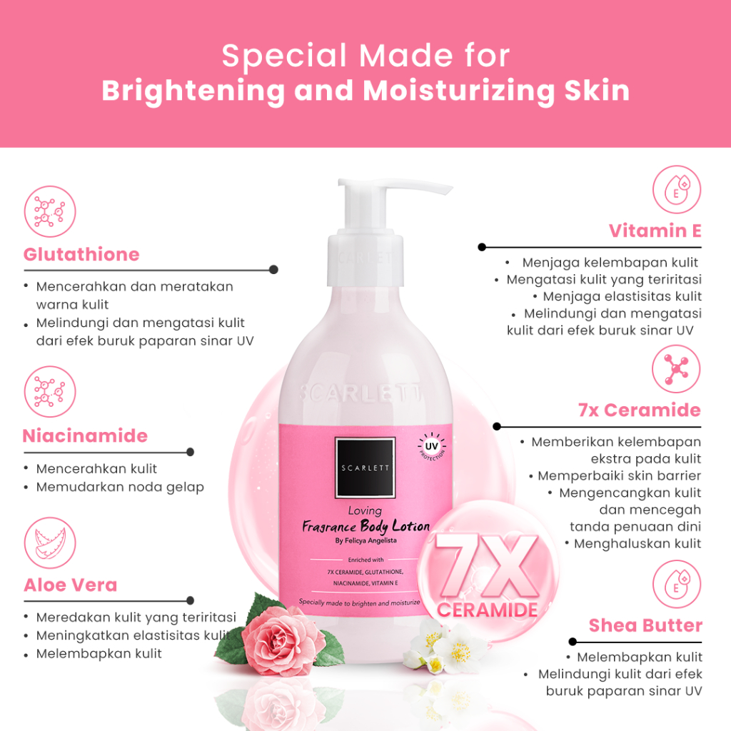 Body Lotion ini sangat ampuh dalam memutihkan kulit tubuh bahkan sejak pemakaian pertama, melindungi dari polusi dan sinar UV, dan mencerahkan sepanjang hari ???? Mengandung glutathione dan vitamin E. Penggunaan secara rutin dapat membantu menutrisi, melembabkan serta mencerahkan kulit tubuh secara lebih maksimal.