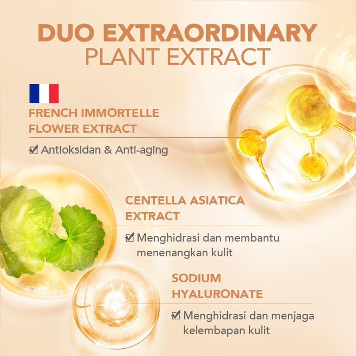 3. Hydrating and Nourishing: Immortelle C-lock Essence dan Sodium Hyaluronate yang dapat menghidrasi kulit serta menjaga kulit tetap sehat, serta Centella asiatica yang dapat menenangkan dan menyejukkan kulit.
