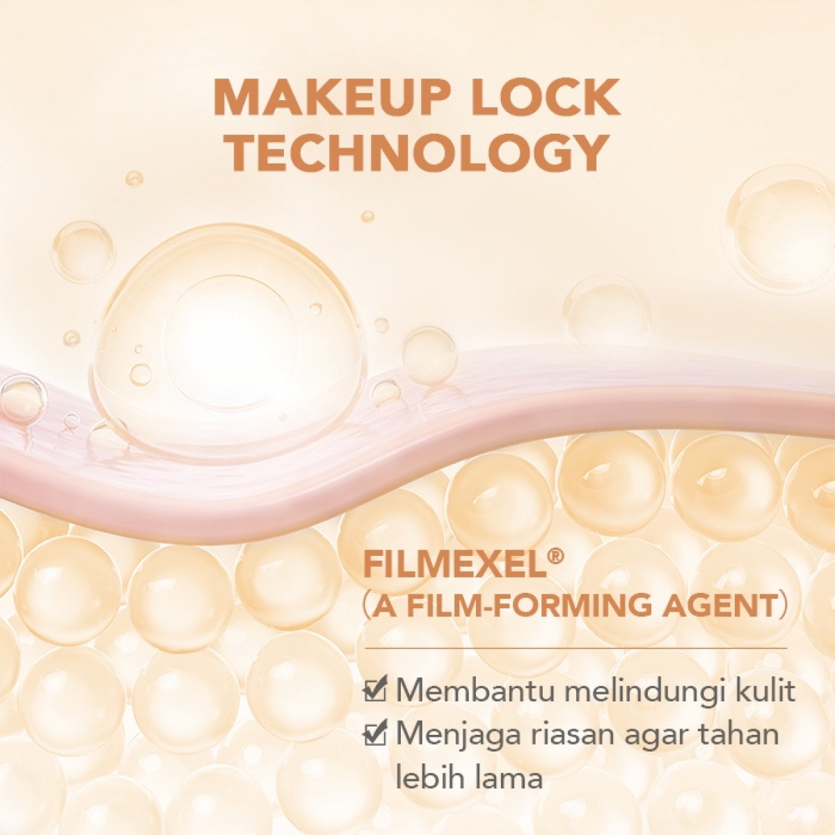 1. 12 Hours Makeup Lock: Mengandung Filmexel® yang diketahui dapat membuat lapisan breathable yang mengunci makeup secara efektif hingga 12 jam.