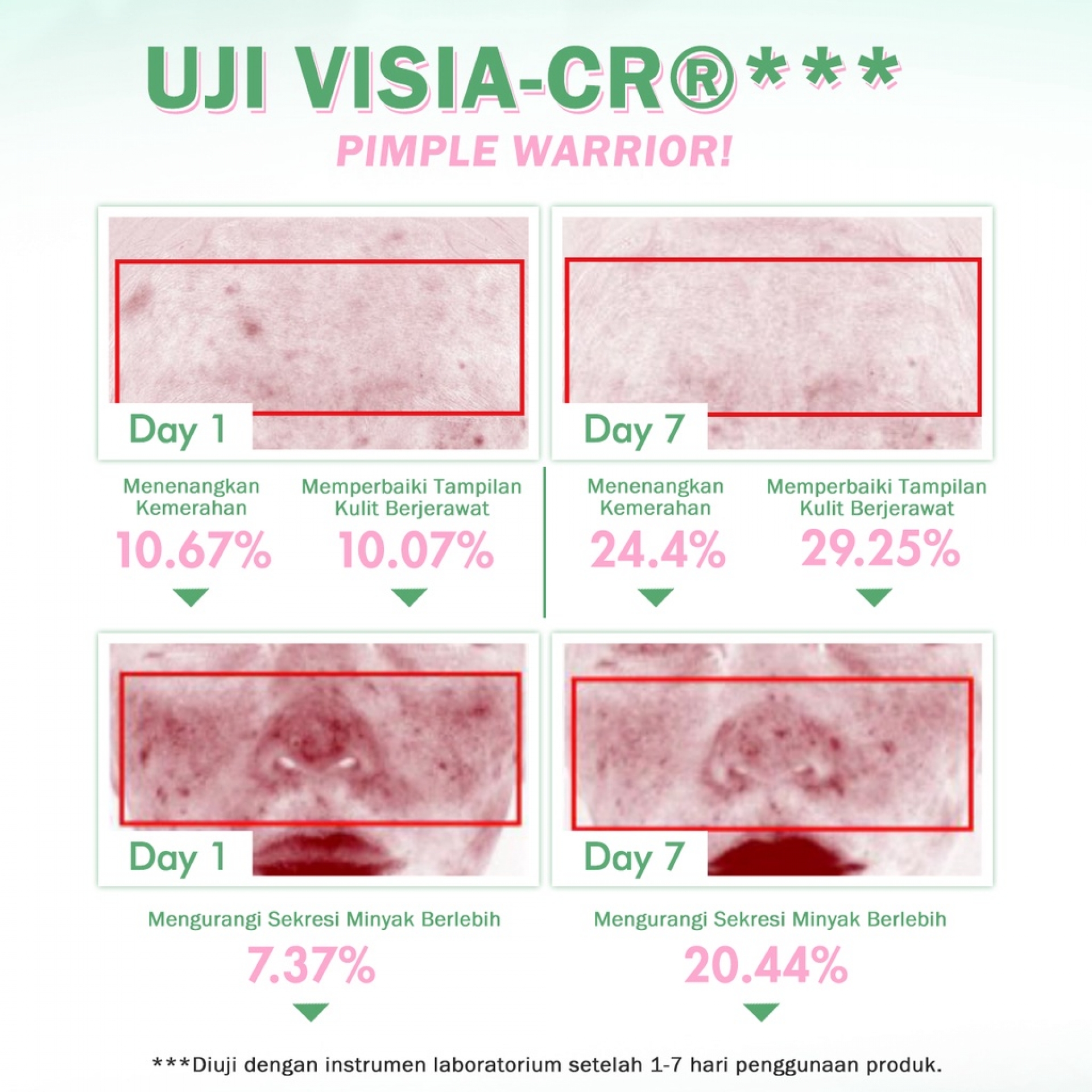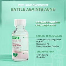 Solusi perawatan jerawat dengan 2% Encapsulated Salicylic Acid, 5% Niacinamide, PIONIN, 17% Calamine, dan Korean Fermented Complex untuk membantu mengeringkan jerawat dan menenangkan kemerahan.
