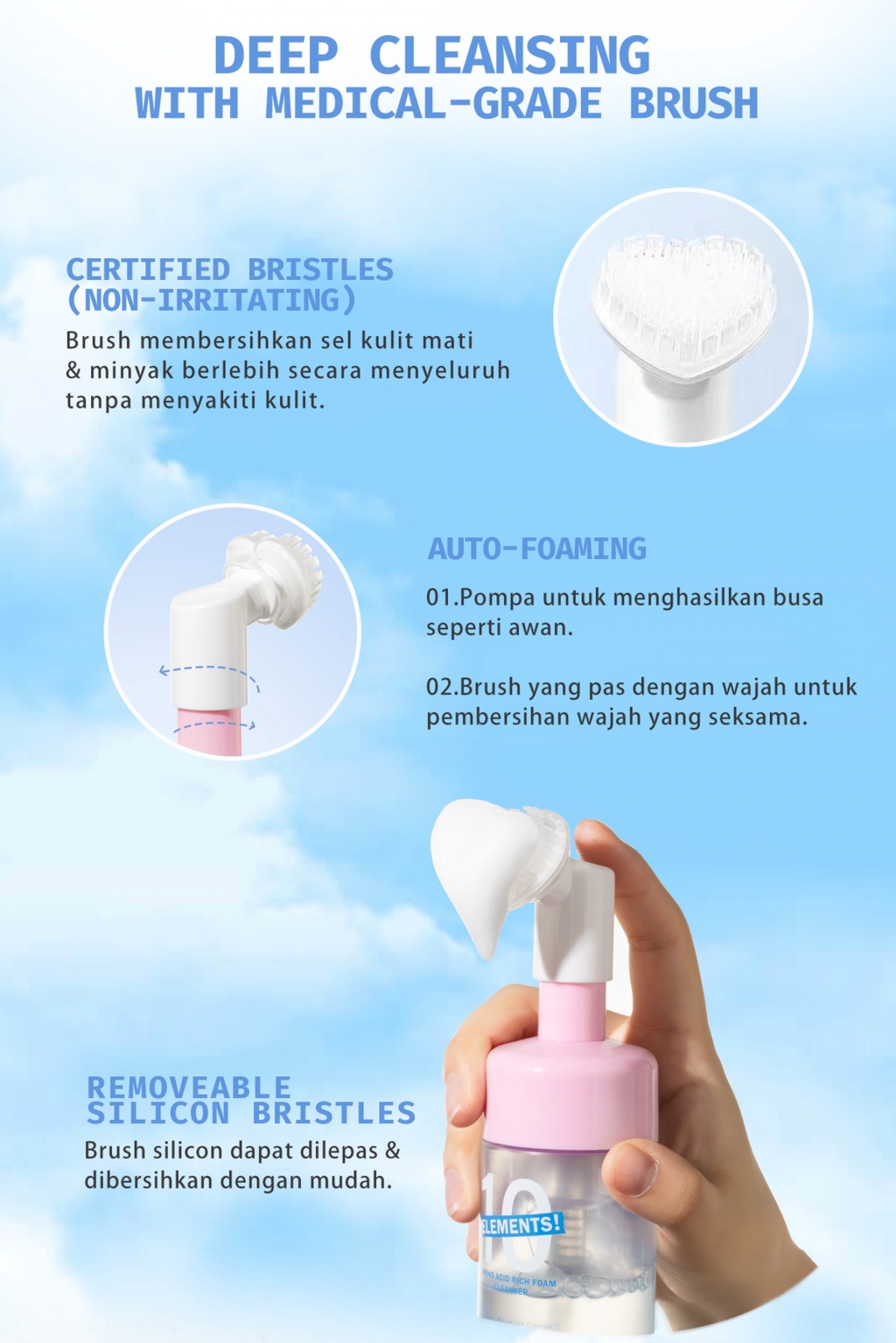 Diformulasikan dengan Natural Mild Surfactants yang membersihkan tanpa mengiritasi dan dilengkapi dengan brush silikon tingkat medis untuk pembersihan mendalam jauh ke dalam pori-pori.