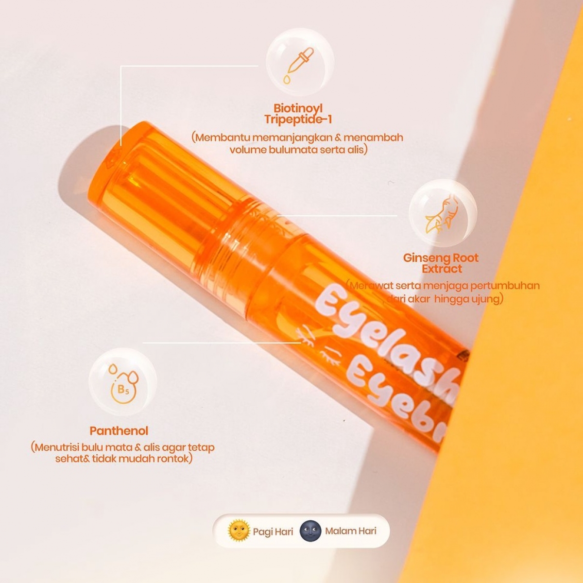 Eyelash & Eyebrow Serum dengan kandungan Biotinoyl Tripeptide -1, Panax Ginseng Root Extract (Korean Ginseng), dan Panthenol untuk menghasilkan Bulu Mata & Alis yang lebih tebal & panjang