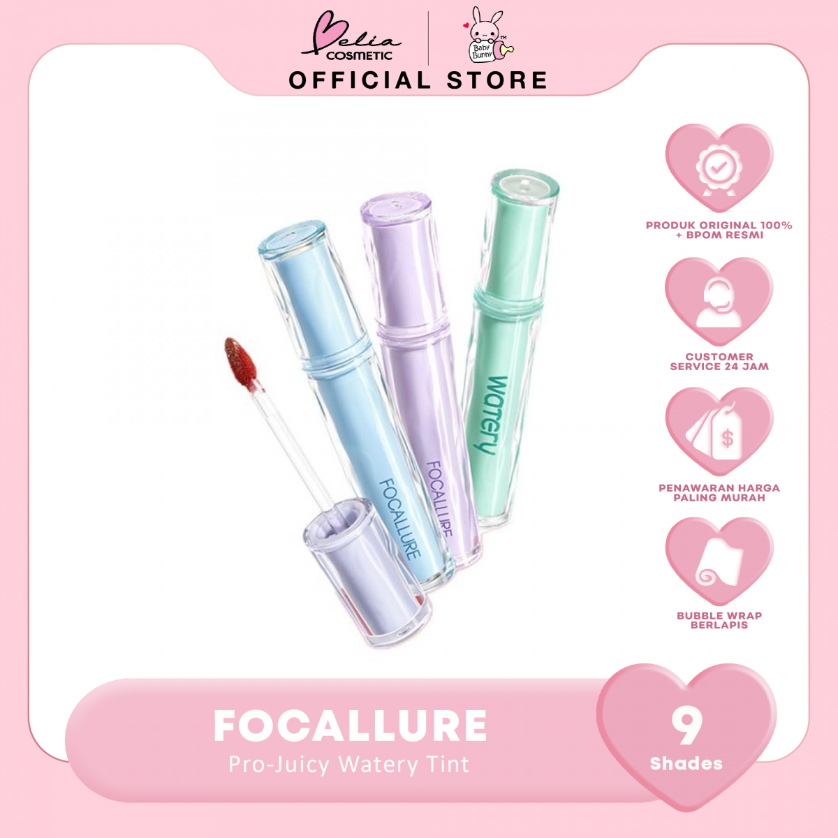 Pro-juicy Jelly Watery Tint adalah versi terbaru dari Focallure Watery Lip Tint yang pertama kali kami luncurkan! Tint bibir watery ultra juicy pertama kami ini melampaui batas efek air dan memberikan kesan bibir ala Korea yang juicy dan lembut.