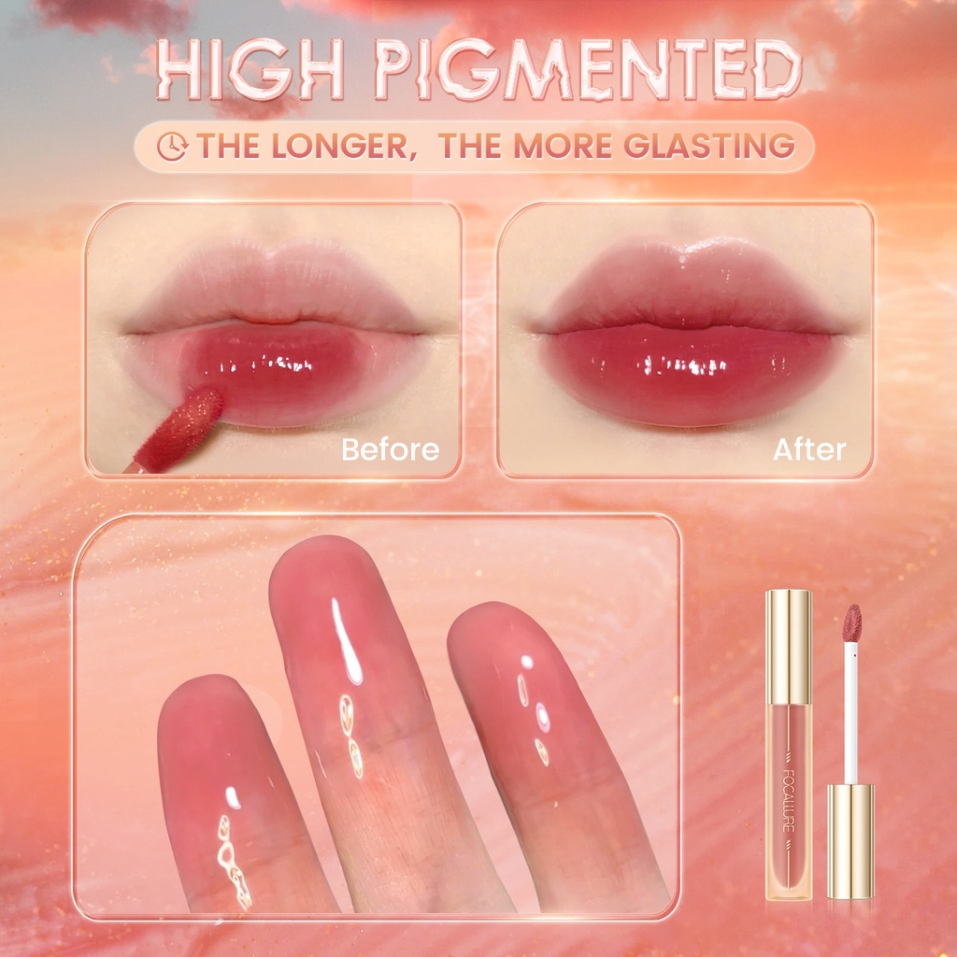 [Glasting Juicy Dewy] Lapisan gloss dipisah dengan lapisan warna, yang tidak hanya dapat mempertahankan warna, tetapi juga meningkatkan kilauan, membuat bibir lembut, juicy, ringan dan transparan, memberikan hasil glasting juicy dewy lips.