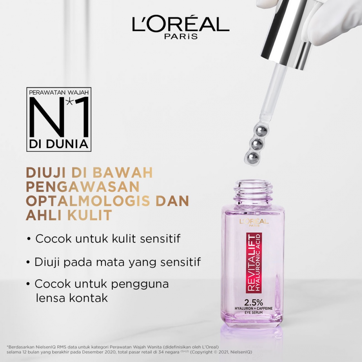 Temukan keampuhan serum mata dengan 1.5% Hyaluron dan 1% Pure Caffeine! Mengembalikan kelembapan kulit area mata dan menyamarkan kantung mata untuk tampilan area mata yang lebih cerah, kenyal, dan tampak lebih halus.